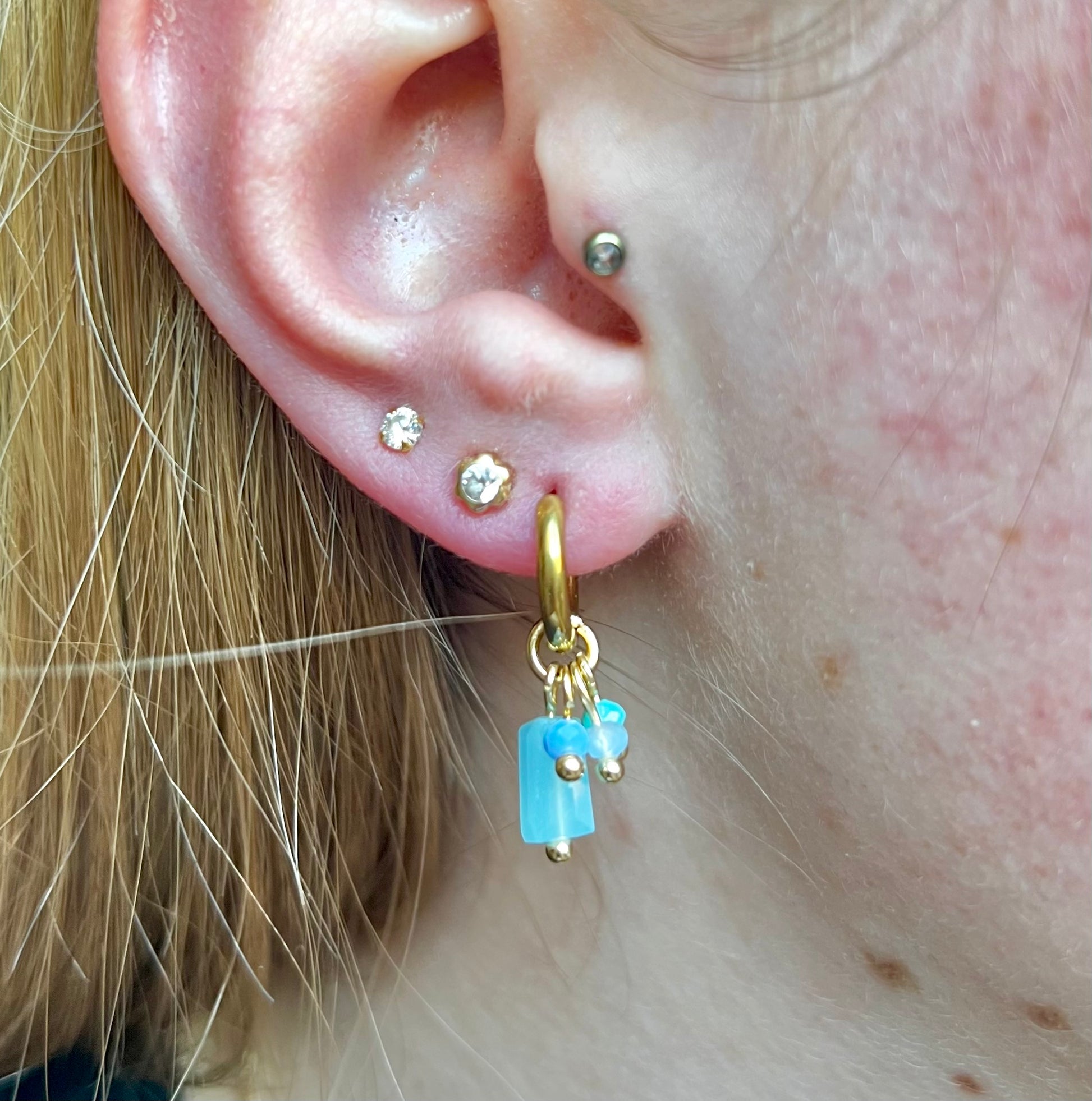 deze hele leuke oorbellen laten we denken aan de zee, zo mooi blauw. Ze zijn van roestvrij staal en ook nog eens waterproef!