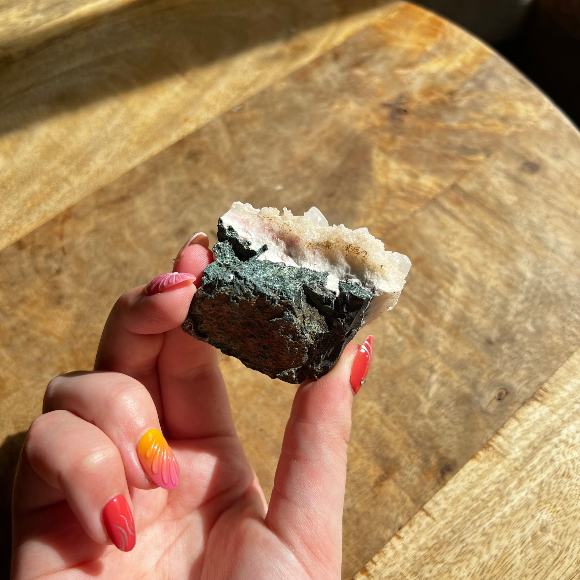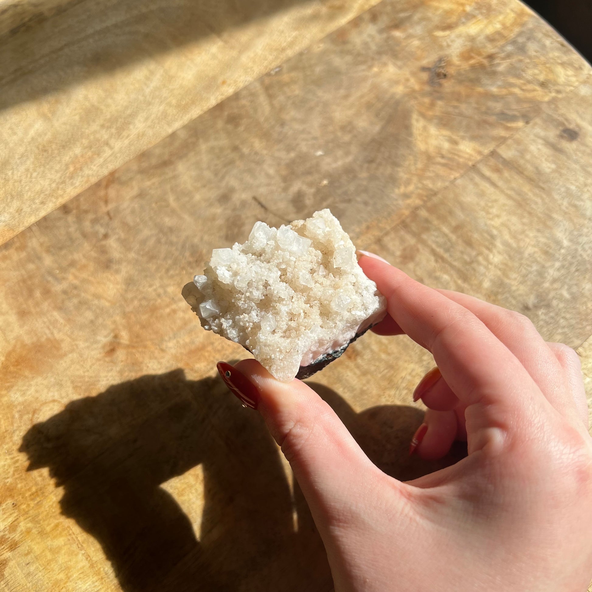 Calciet activeert en stimuleert lichamelijke, geestelijke en spirituele groei en ontwikkeling. De steen werkt motiverend, bevordert zelfvertrouwen, daadkracht, standvastigheid en geeft hoop en moed. Het verenigt gevoel en verstand, kalmeert de geest en zorgt hiermee voor innerlijke rust.