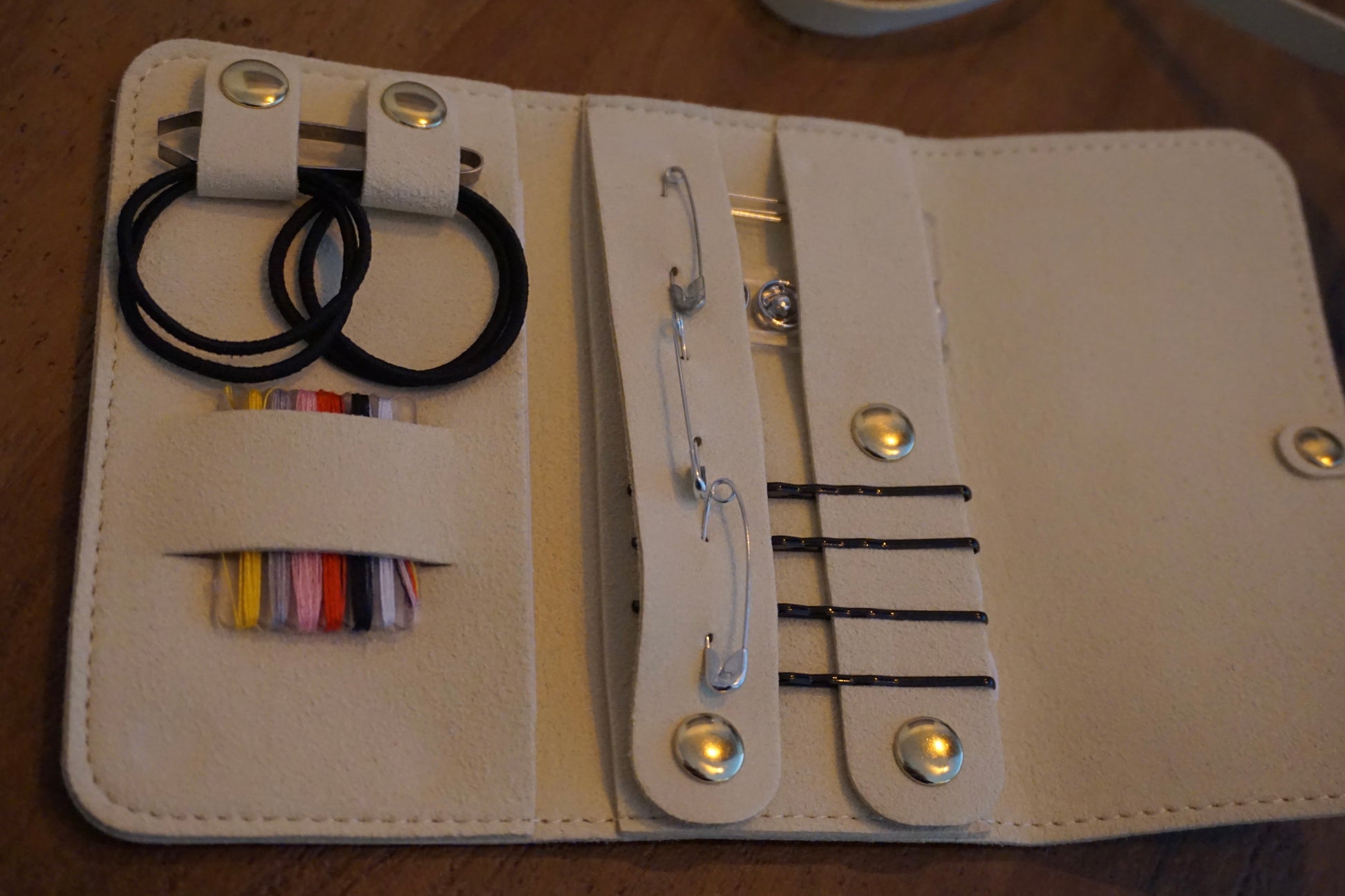 De set is zorgvuldig samengesteld en bevat alles wat nodig is voor snelle en eenvoudige reparaties, zonder dat je een volledige naaidoos hoeft mee te nemen. Alles zit vast dus het rammelt niet.