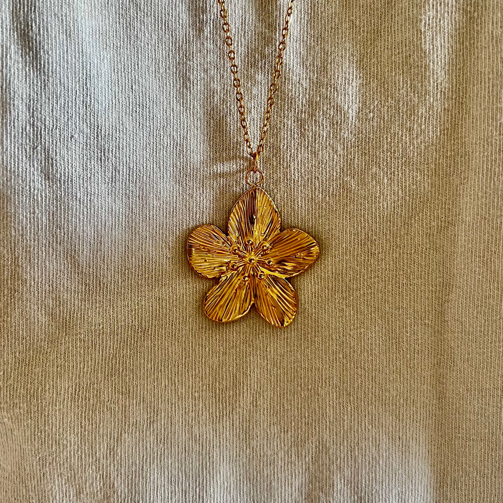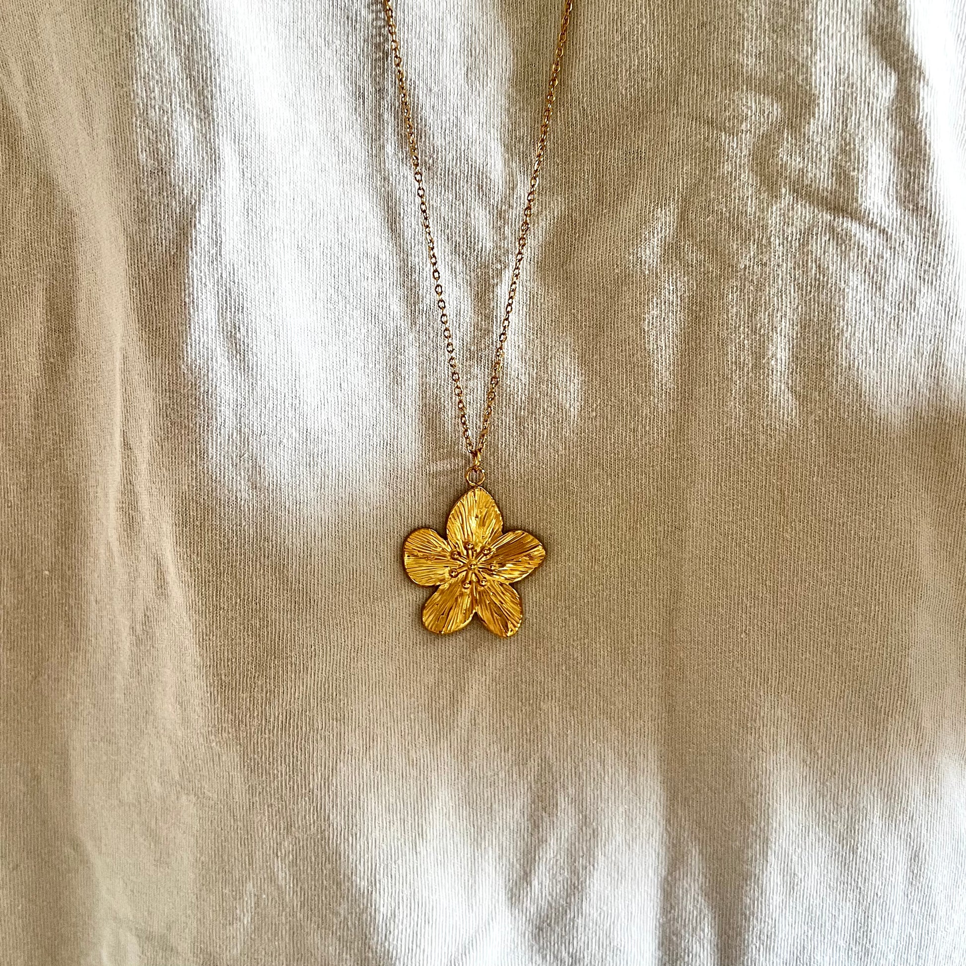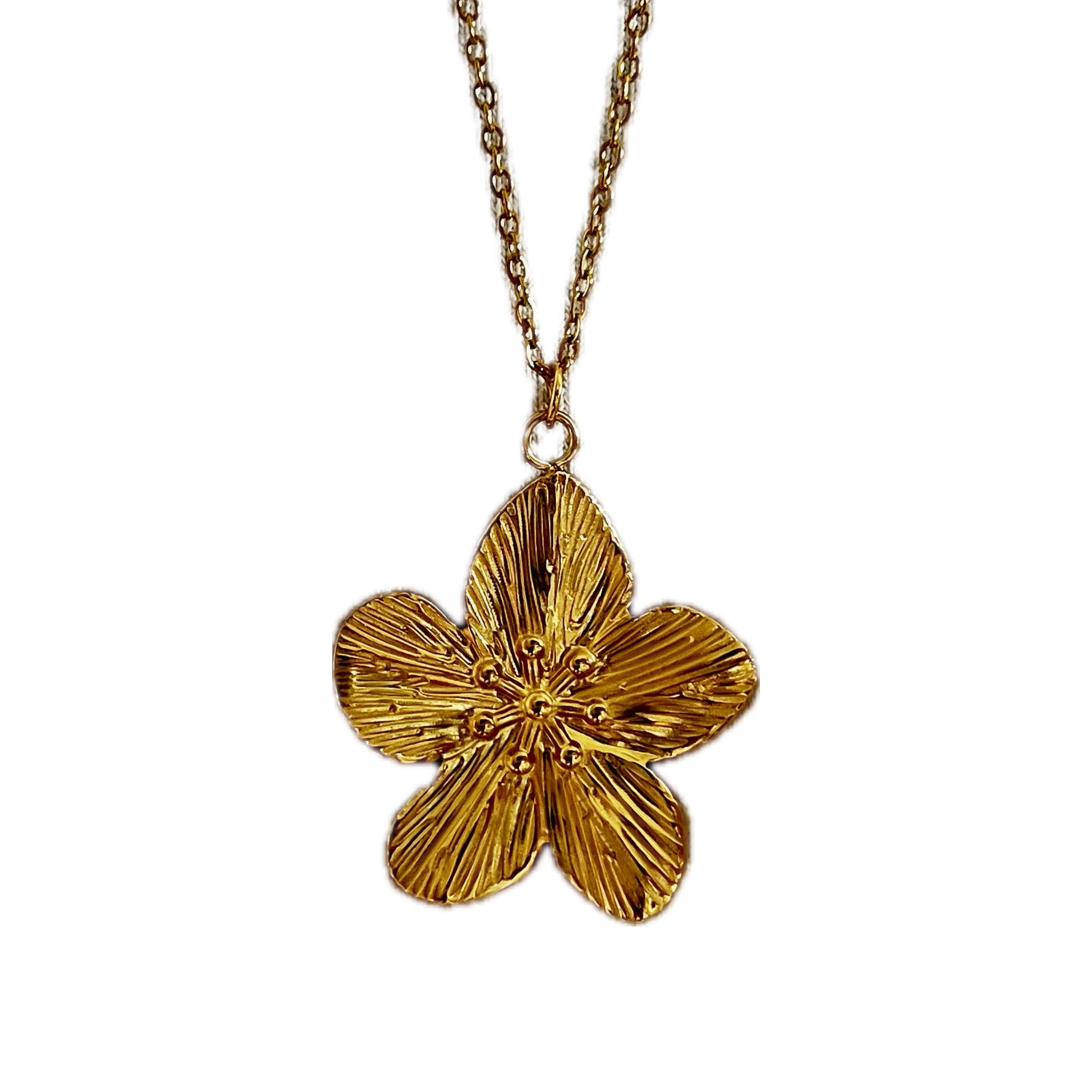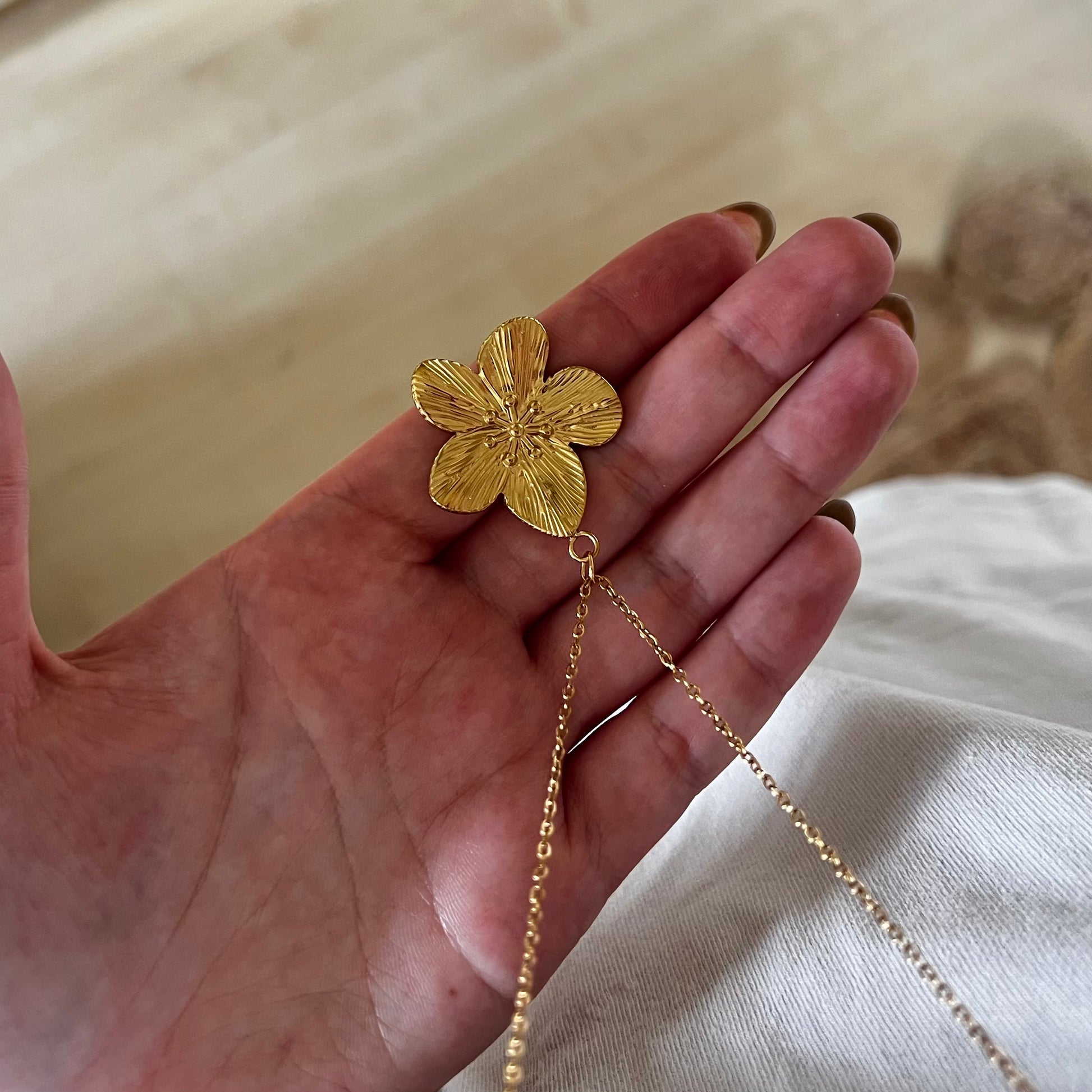 Lange ketting gemaakt van roestvrijstaal! Er zit een hele leuke bloem op! Hij is 85 + 5 cm lang